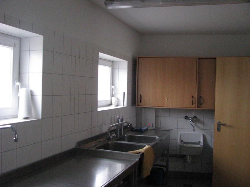 Außerdem stehen eine Kühltheke, eine Kühl- und Gefrierkombination und eine Spülmaschine zur Verfügung.